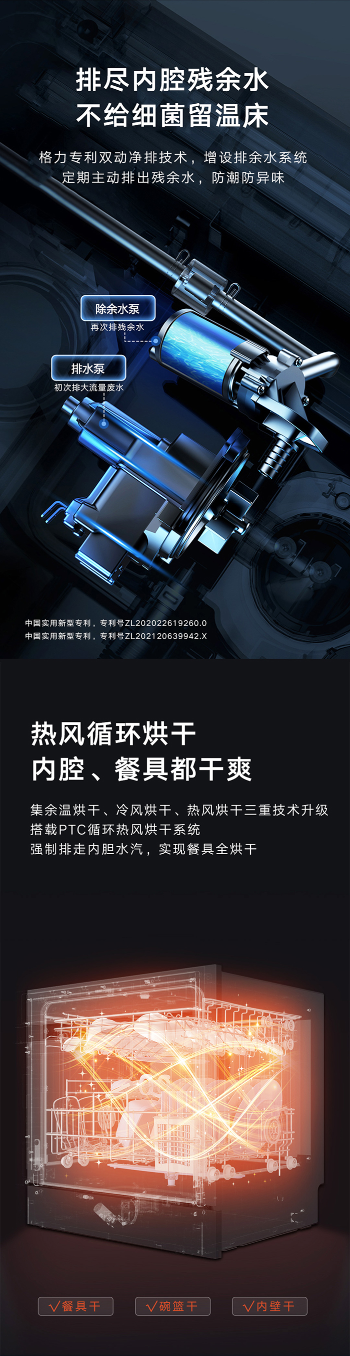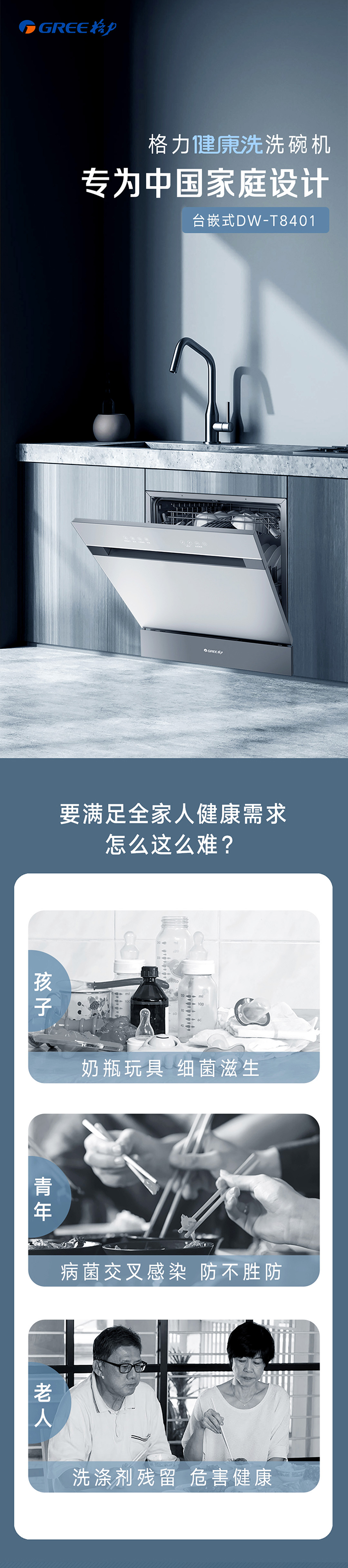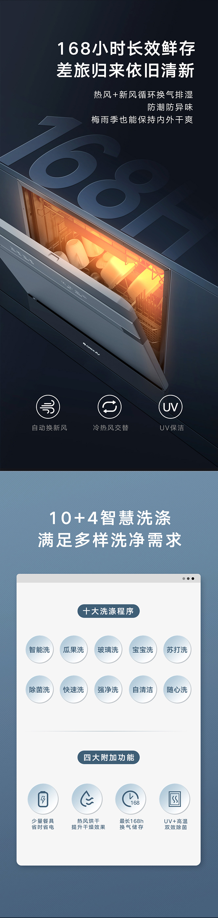 格力健康洗洗碗機,專為中國家庭設計;洗除排烘存更全能;熱風循環(huán)烘干,內(nèi)腔餐具都干爽